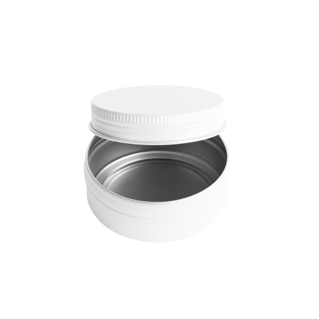 Our high quality seamless matt white aluminium screw top cans will not rust. They are not only perfect for the candle maker, but are the perfect display tin for lip balms, creams, lotions, beard waxes, bath salts and any other cosmetic product.
